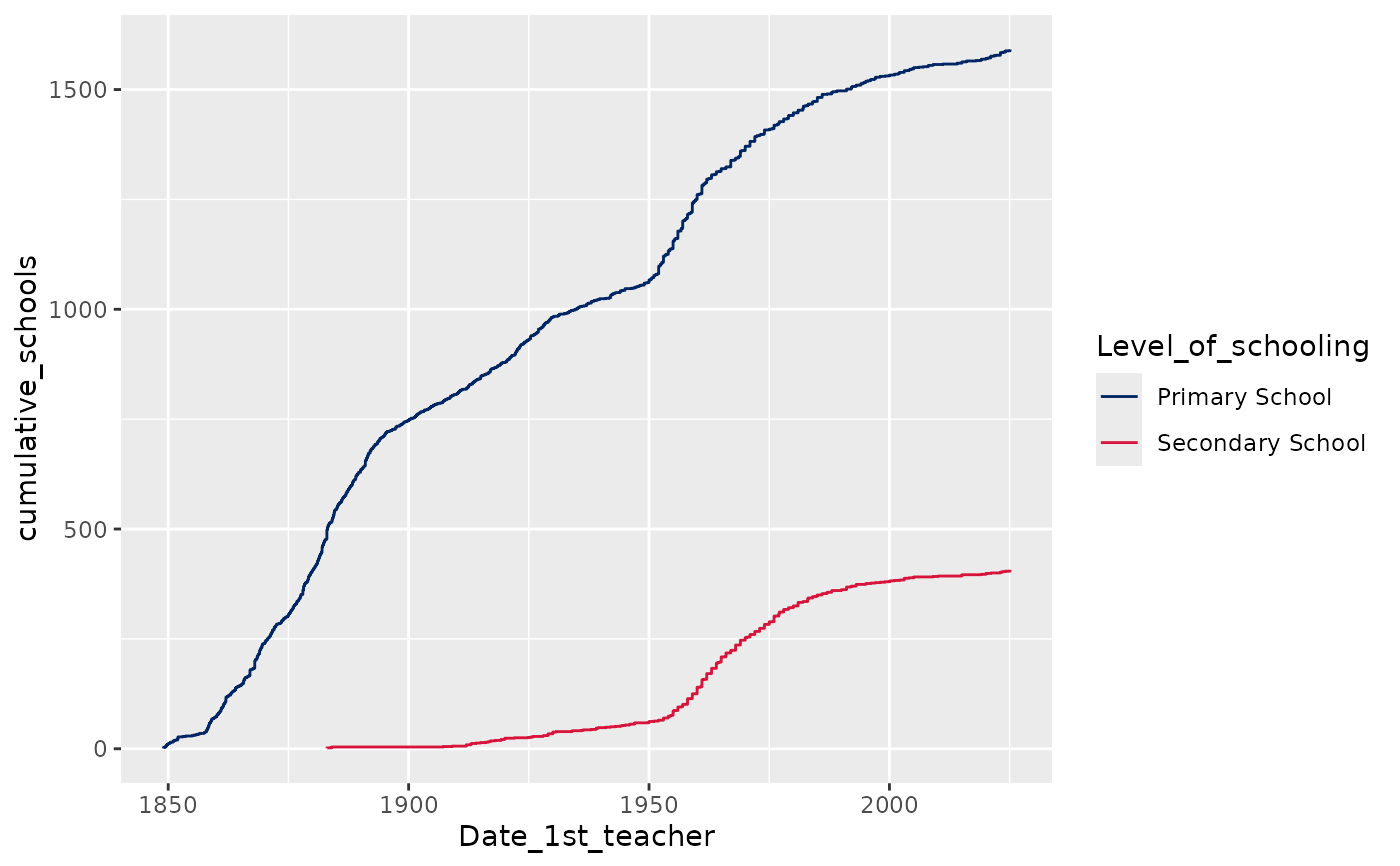 # Plot growth in primary and secondary schools over time